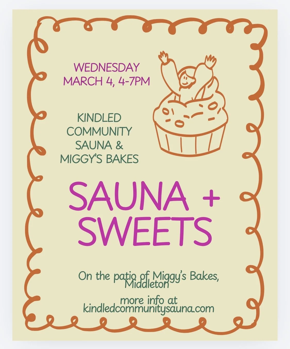 Come on out to the outdoor patio area outside of Miggy’s Bakes for an evening of wood-fired community sauna sessions!